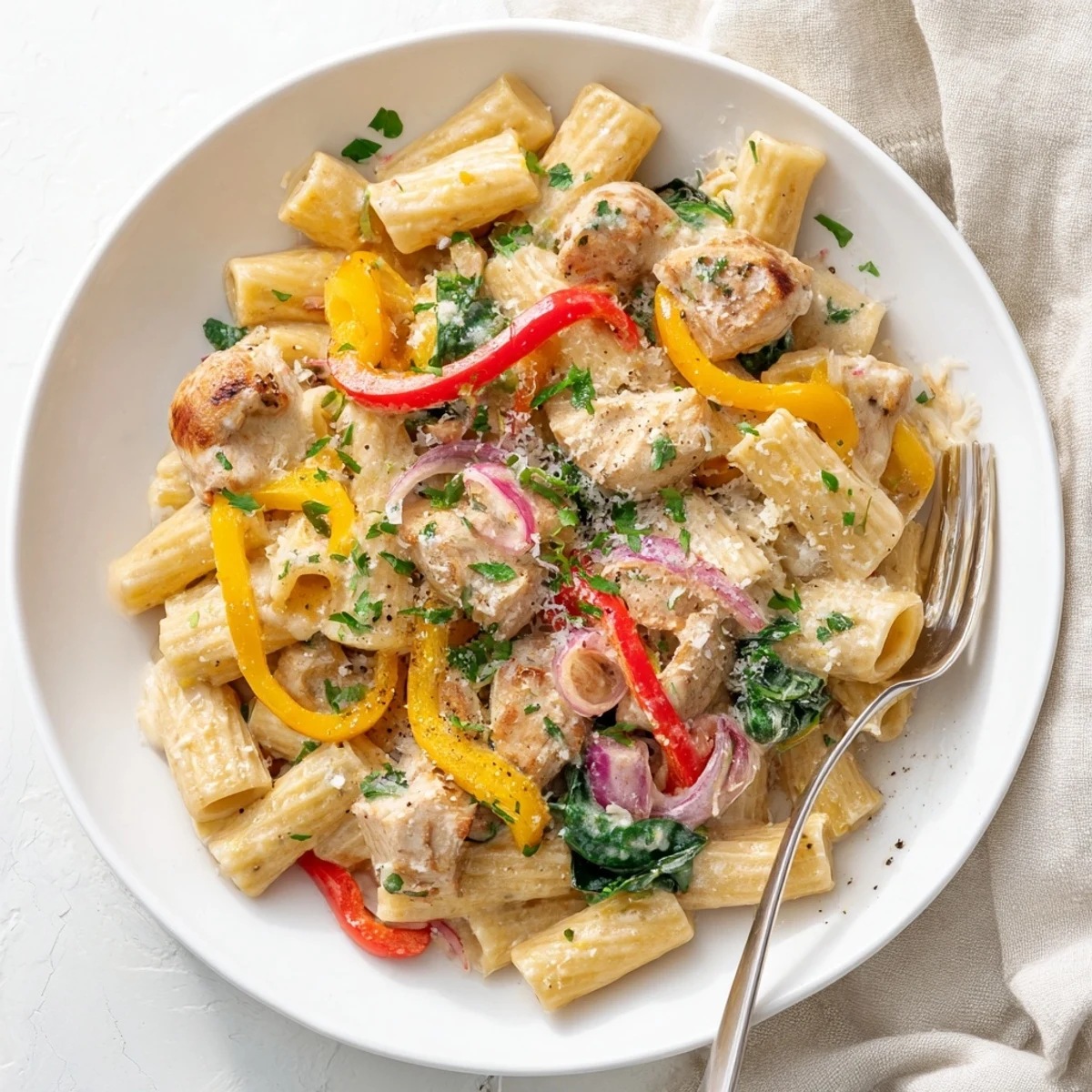 This satisfying pasta dish combines golden chicken breast with colorful bell peppers and penne, all coated in a velvety cowboy butter sauce. The sauce gets its signature flavor from butter infused with Dijon mustard, fresh lemon juice, Worcestershire, smoked paprika, and red pepper flakes. Heavy cream and Parmesan create a luxurious finish that clings perfectly to every bite. The entire dish comes together in just 40 minutes, making it ideal for weeknight dinners when you want something special without spending hours in the kitchen.