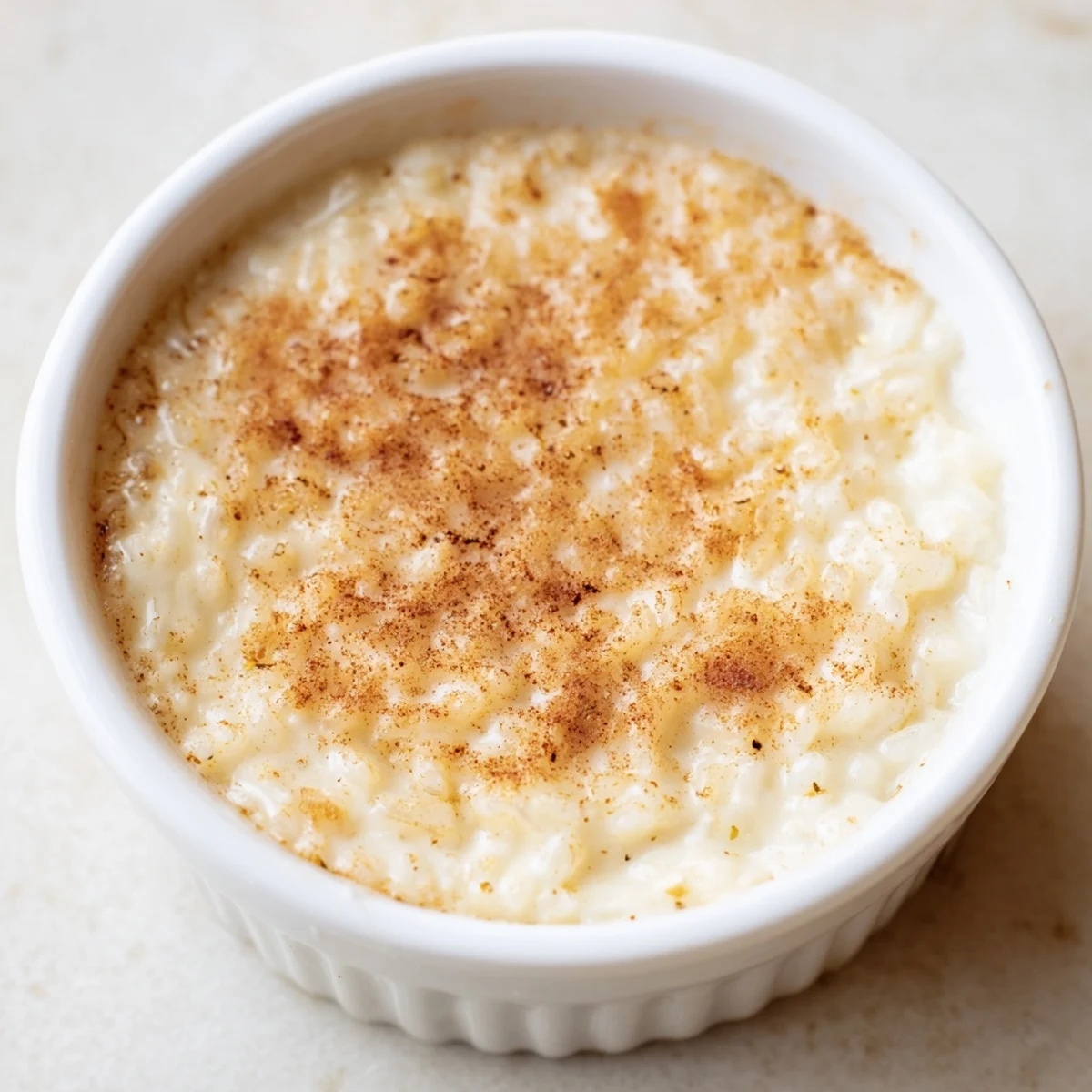 Short-grain rice is ideal because its high starch content creates a naturally creamy texture. Arborio or pearl rice work beautifully. The grains release starch as they cook, thickening the custard without needing additional thickeners.